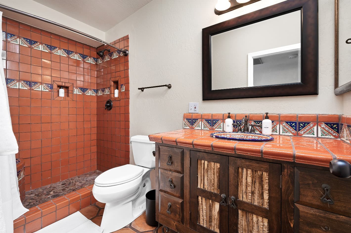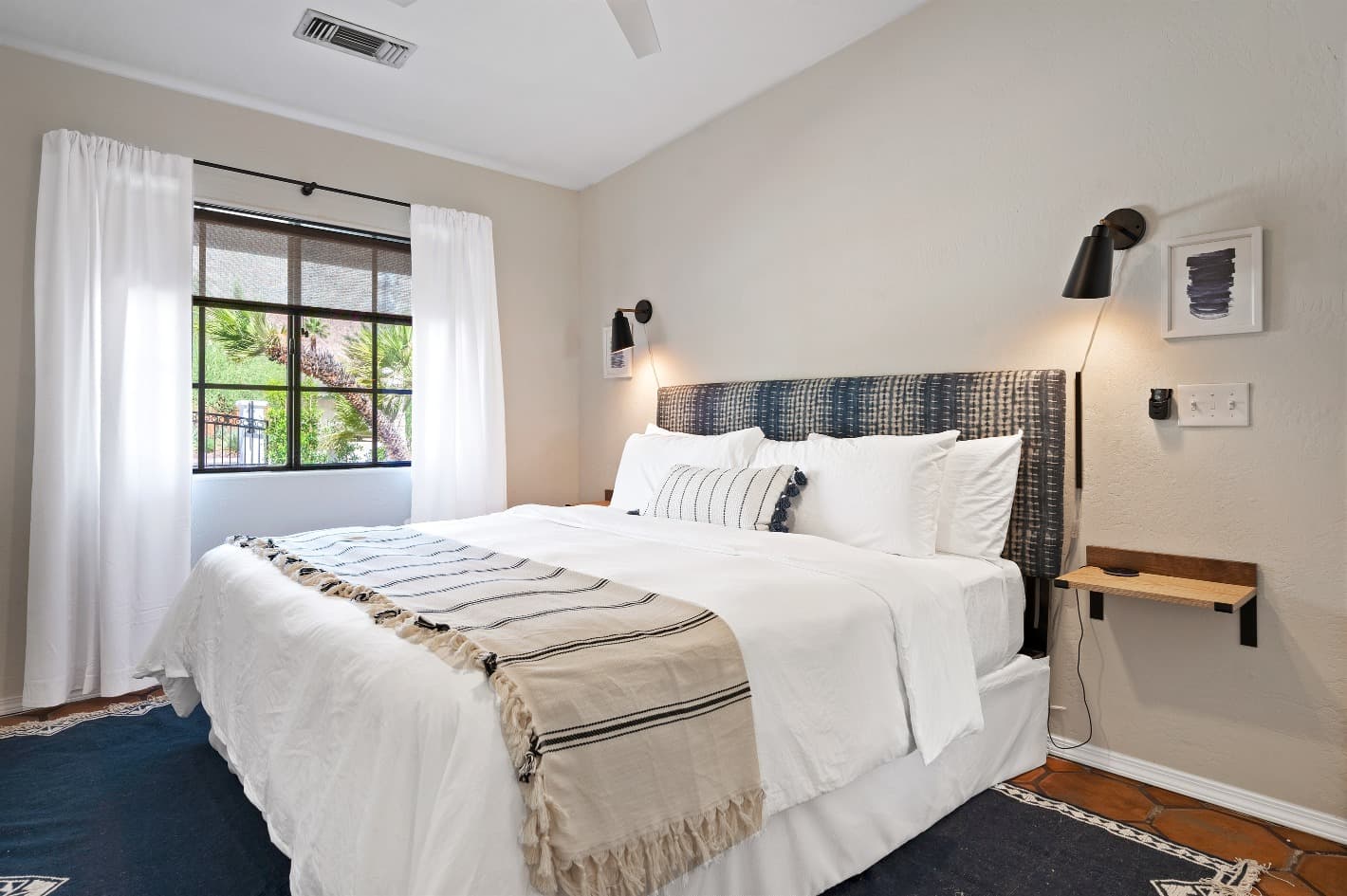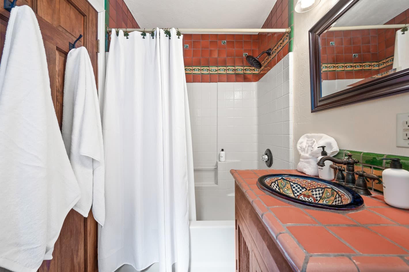 The casita is attached to the house, but has a separate entrance accessible from the backyard. An ensuite bathroom (with bathtub) is provided. In total, there are 4 king beds and 1 queen so you and your guests can sleep in roomy comfort.