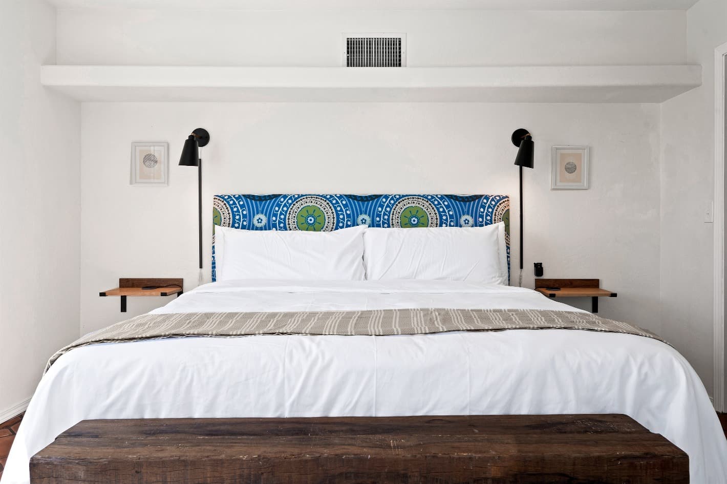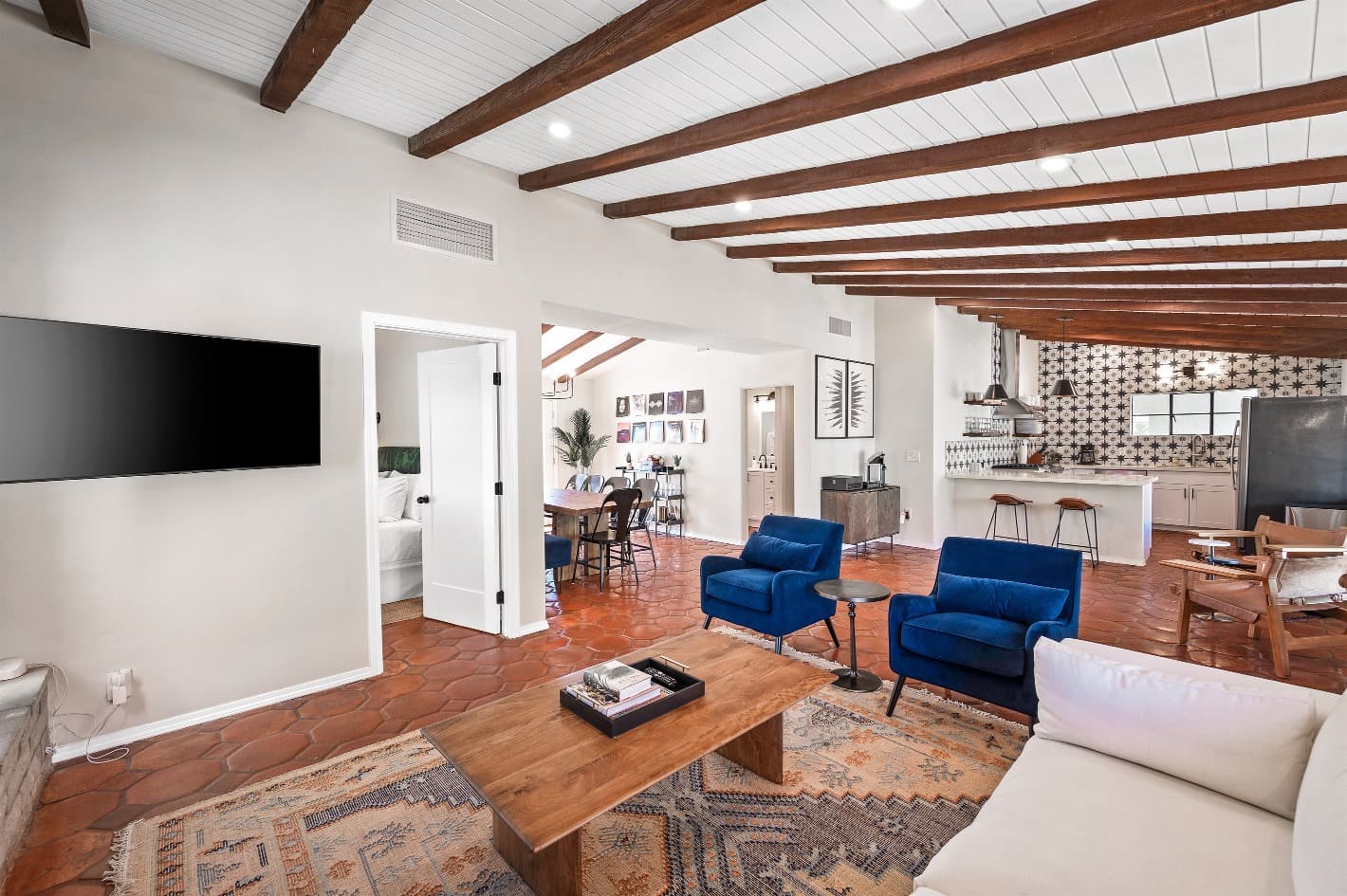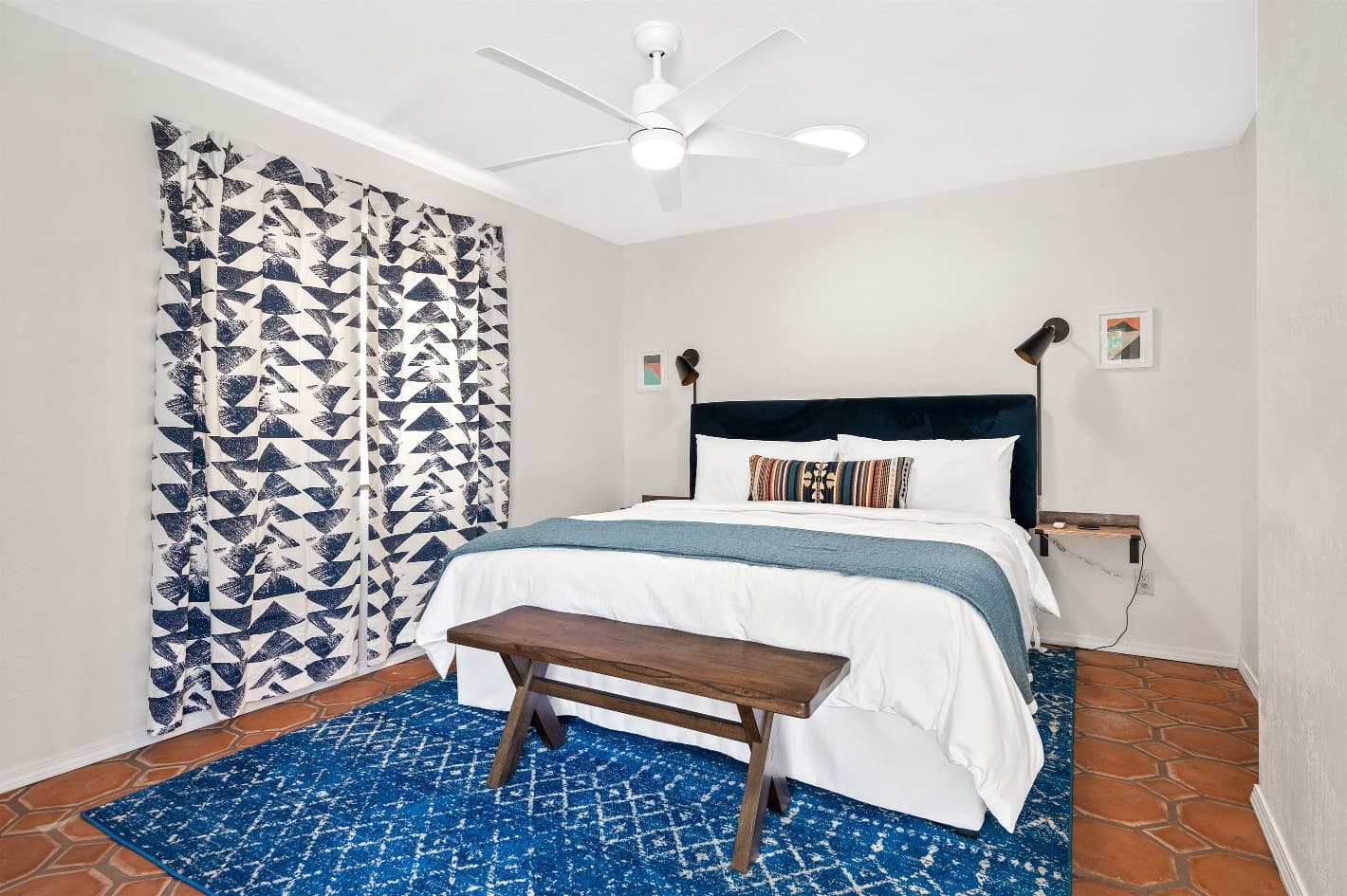 The casita is attached to the house, but has a separate entrance accessible from the backyard. An ensuite bathroom (with bathtub) is provided. In total, there are 4 king beds and 1 queen so you and your guests can sleep in roomy comfort.
