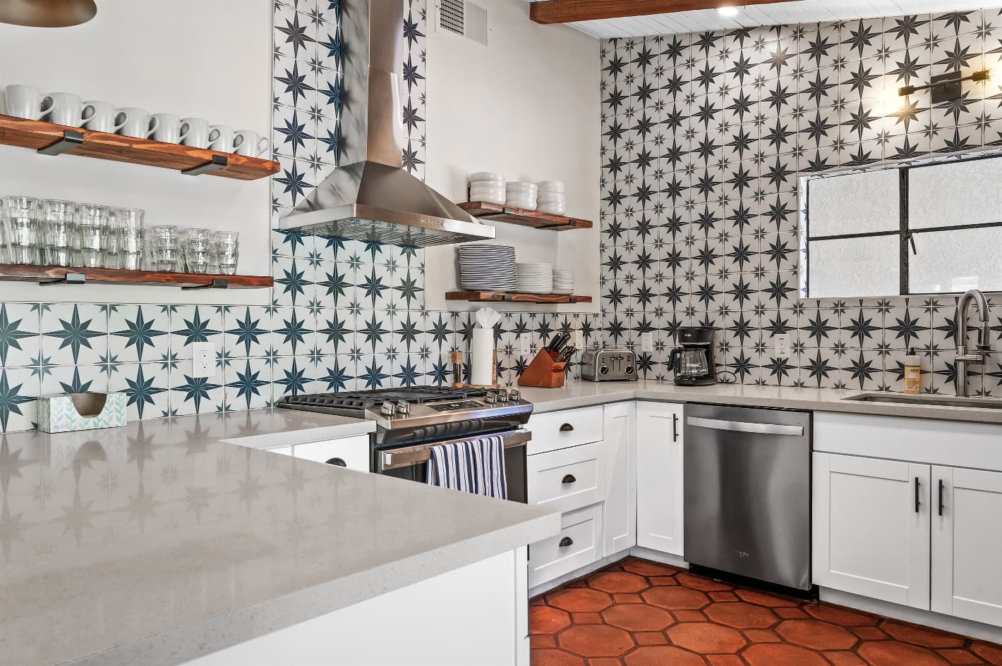 The property layout is ideal for a group of adults, two families, or a multi-generational group. Enter the house through a spacious and airy open concept kitchen and living room. The living room retains the original 1938 fireplace, along with ample seating and a large TV for movie night. The kitchen is brand new and stocked with Hexclad pans, Henckel knives, and all of the cook and bakeware you might need to whip up a gourmet meal. A Nespresso machine with a starter pack of pods will keep you caffeinated in the most delicious way possible. Ample glassware and dishware are provided for your group. The backyard can be reached through the dining room, which contains a large table and seating for 10 -- perfect for convivial meals, or enjoying our large selection of board games.